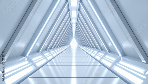 © Ahmed, Fototapeta premium Futuristic Sci-Fi Corridor Empty Triangle Tunnel Extending into Infinity