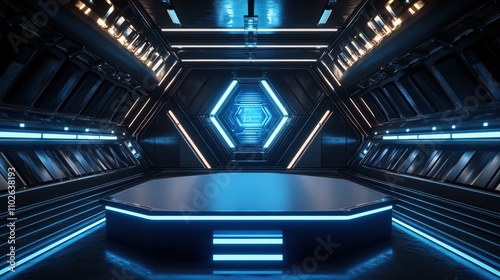 Obraz premium Futuristic Sci Fi Corridor with Illuminated Platform