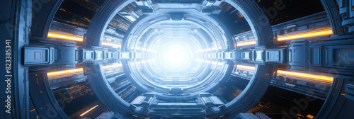 Obraz premium Futuristic Sci-Fi Energy Chamber in Space Station with Radiant Power Cores...