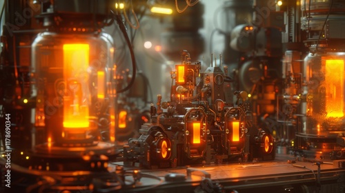 Obraz premium Futuristic Sci Fi Factory Machine Orange Glow