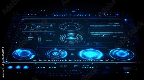 Obraz premium Futuristic Sci-Fi HUD Interface Glowing Blue Digital Dashboard