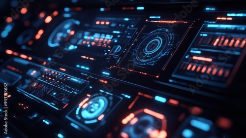 Obraz premium Futuristic Sci-Fi Interface Design with Blue and Orange Glowing Lights.