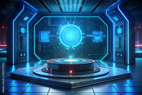 Naklejka premium Futuristic Sci-Fi Interface Podium Digital Technology Display