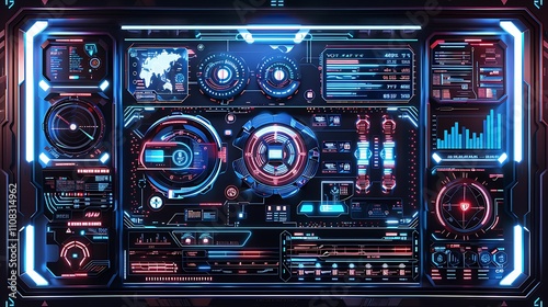 Obraz premium Futuristic Sci-Fi Interface with Glowing Red and Blue Displays
