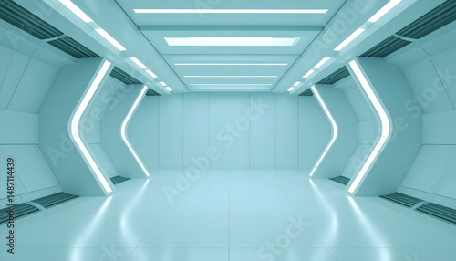 Obraz premium Futuristic Sci-Fi Space Facility Interior with Blue and White Lighting