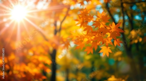 Fototapeta premium Futuristic sci-fi styled image of autumnal maple trees in a park. Electric...