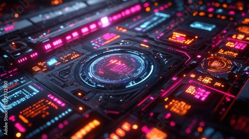 Obraz premium Futuristic Sci Fi Technology Interface Neon Glowing Digital HUD Panel Display