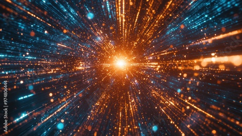 Naklejka premium Futuristic seamless loop of particle beams creating a dynamic digital data flow with powerful rays and light