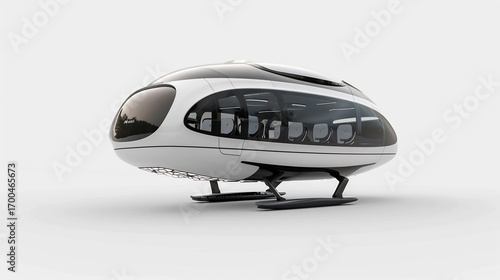 © heri, Obraz premium Futuristic self-flying autonomous air taxi on a white background for a futuristic city