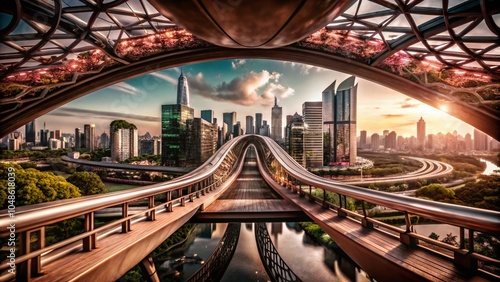 © Arnada, Fototapeta premium Futuristic Self-Repairing Infrastructure Bridge with Advanced Technology in a Panoramic View