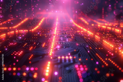 © Natalia, Obraz premium Futuristic server abstraction with glowing neon lights forming intricate data connections and pathways,