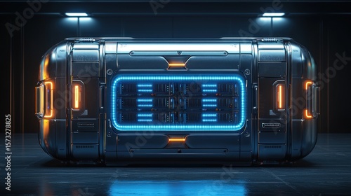 © uu, Obraz premium Futuristic server box with glowing blue light