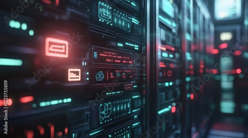 Obraz premium Futuristic Server Rack Displays Data Processing
