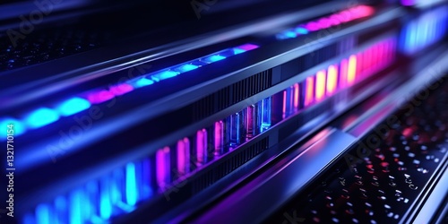 Fototapeta premium Futuristic server rack with vibrant RGB lighting.