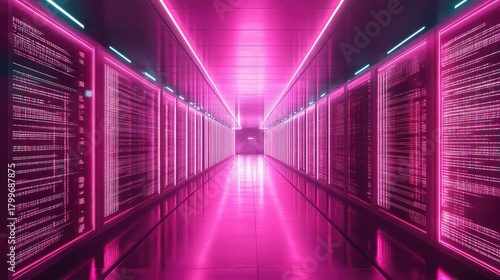 Fototapeta premium Futuristic server racks in data center glowing pink