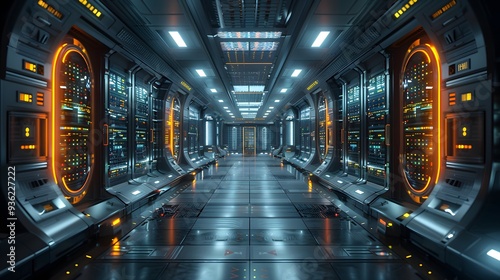 © Heni, Fototapeta premium Futuristic Server Room: A Glimpse into the Heart of Technology