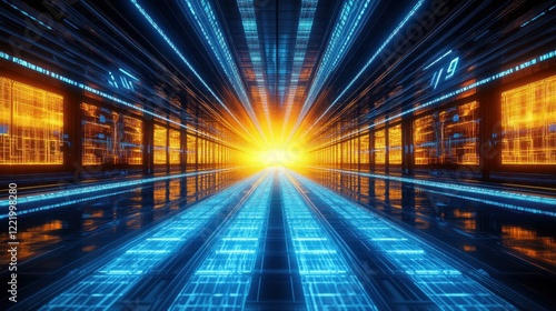 Fototapeta premium Futuristic server room corridor, data streams, glowing, digital technology,...