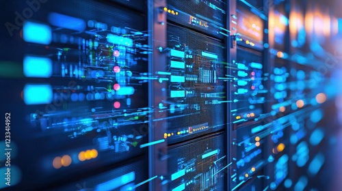 © Smoky, Obraz premium Futuristic Server Room Data Center Technology Network Blue Light
