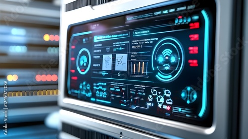 © terat, Obraz premium futuristic server room data center ui - futuristic technology