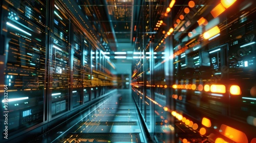 Fototapeta premium Futuristic Server Room with Glowing Lights
