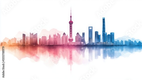 Fototapeta premium Futuristic Shanghai Skyline in Watercolor Abstract Art