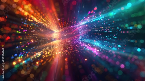 Fototapeta premium Futuristic shimmering particles 3d abstract background Colorful Burst of Light