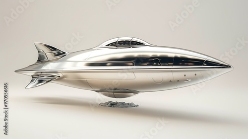 Obraz premium Futuristic Silver Spaceship Isolated on White Background
