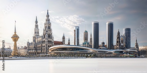 Obraz premium Futuristic Skyline Blending Historical and Modern Architecture