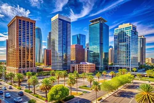 Obraz premium Futuristic Skyscrapers Against a Bright Blue Sky in Phoenix Arizona...