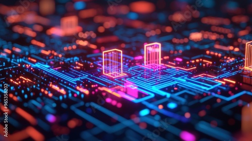 Obraz premium Futuristic Smart City Grid with Glowing Interconnected Technology Streets in...