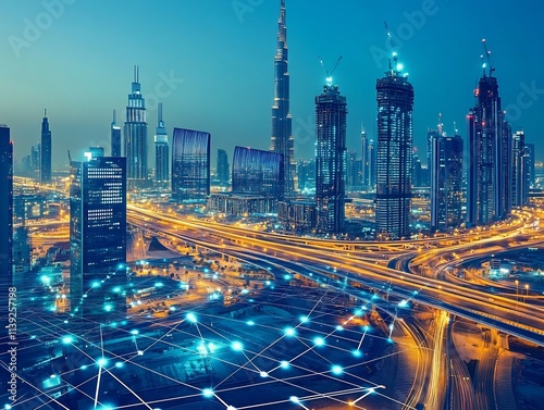 Fototapeta premium Futuristic Smart City Landscape of Dubai with Digital Alumni Associations