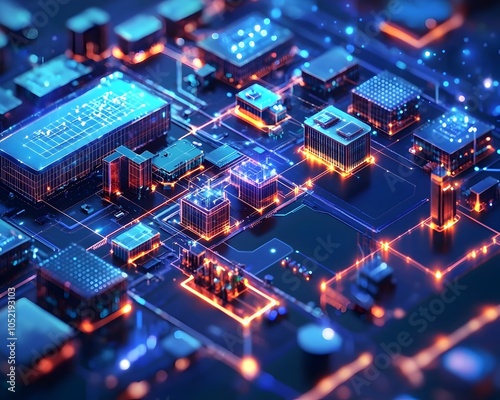 © Thares2020, Fototapeta premium Futuristic Smart City Powered by Blockchain Technology Interconnected Digital Infrastructure