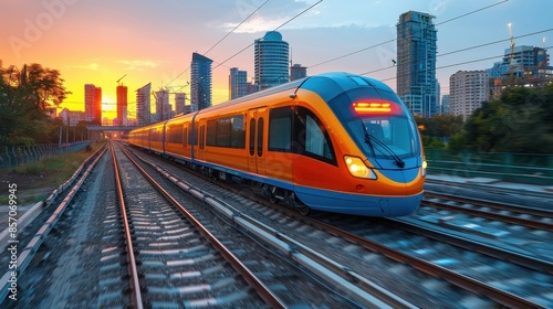 Naklejka premium Futuristic smart city scene with eco-friendly energy solutions and a digital...