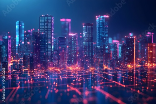 Fototapeta premium Futuristic Smart City Skyline with AI Powered Infrastructure and 5G on Dark...