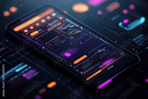 © Ariestia, Fototapeta premium Futuristic Smartphone Display with Neon User Interface