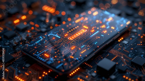 © khoirul, Fototapeta premium Futuristic Smartphone Displaying Circuitry