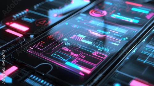 Obraz premium Futuristic Smartphone Interface with Neon Lights