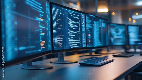 Fototapeta premium Futuristic software development, interactive holographic screens, sleek design