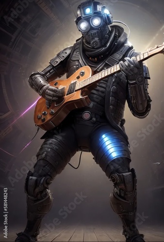 © Divisive Impress, Naklejka premium futuristic soldier with a guitar