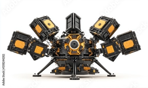 Fototapeta premium Futuristic spacecraft lander deployed on white background, exploration concept