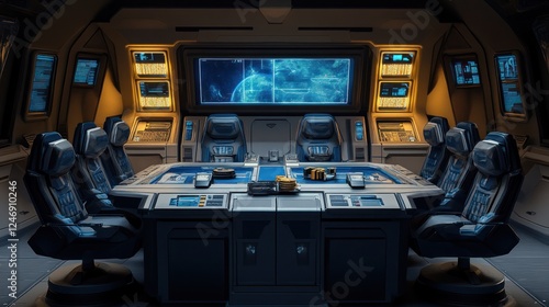 Naklejka premium Futuristic Spaceship Bridge Command Center Interior Design