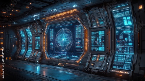 Obraz premium Futuristic Spaceship Bridge: High-Tech Control Room