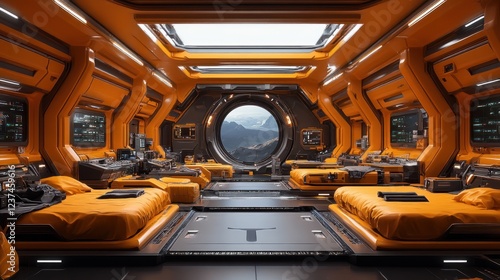 © wulan, Fototapeta premium Futuristic Spaceship Cabin with Mountain View