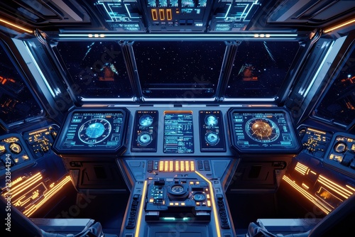 Obraz premium Futuristic spaceship cockpit design with glowing interfaces sci-fi setting