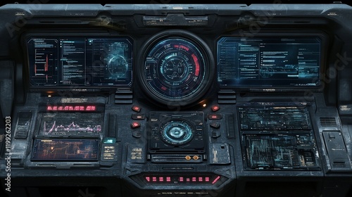 Obraz premium Futuristic Spaceship Cockpit Interface: Advanced Technology and Digital Displays