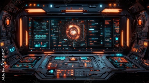 Fototapeta premium Futuristic spaceship cockpit interior