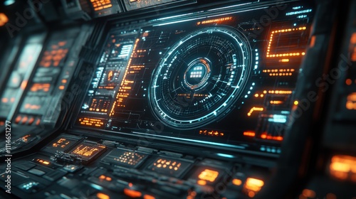 Fototapeta premium Futuristic Spaceship Control Panel Interface Display