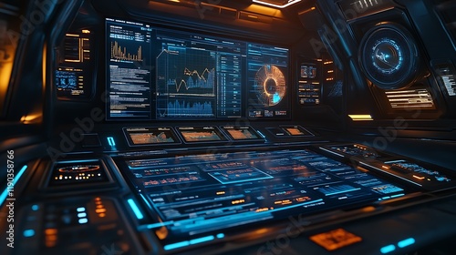© Jihad, Obraz premium Futuristic Spaceship Control Panel With Data Displays