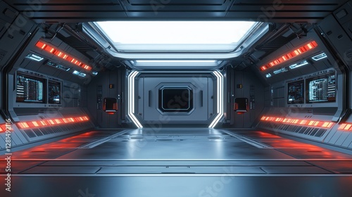 Obraz premium Futuristic Spaceship Corridor: A Sci-Fi Interior Design