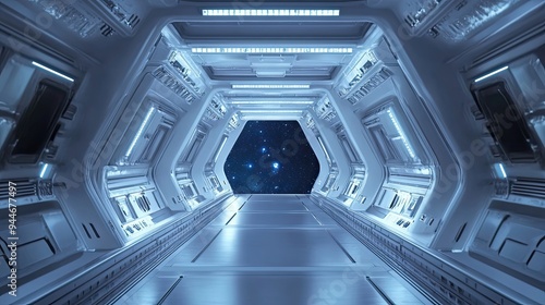 Obraz premium Futuristic Spaceship Corridor with Starry Viewport